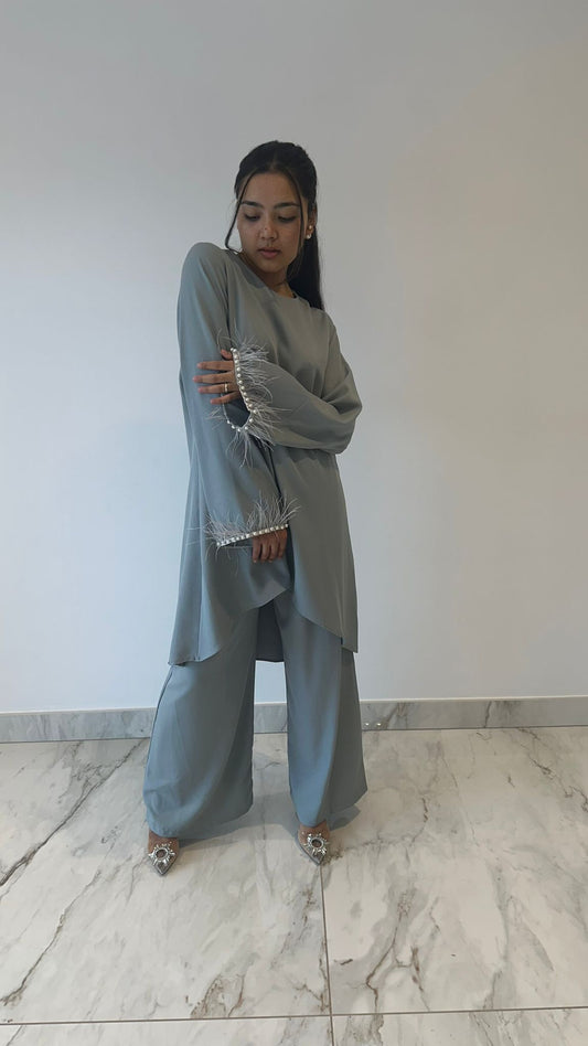 Sold outIce Blue Pearl Neck & Sleeve Coord