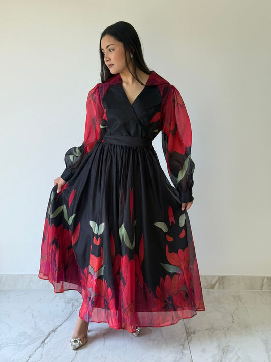 Sold outCrimson Bloom V-Neck Maxi Dress
