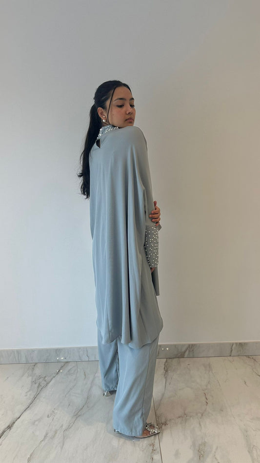 Sold outIce Blue Pearl Neck & Sleeve Coord